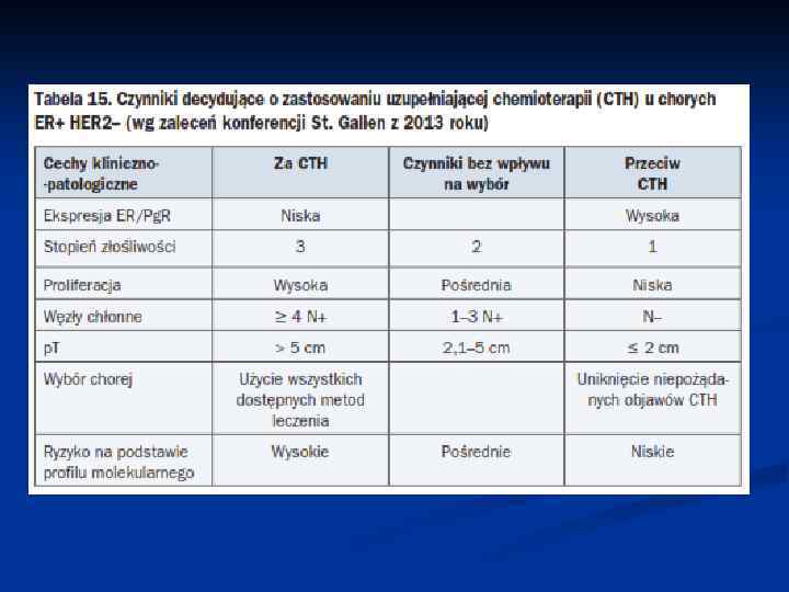 CTH HTH anty-HER 2 CTH – chemioterapia; HTH – hormonoterapia