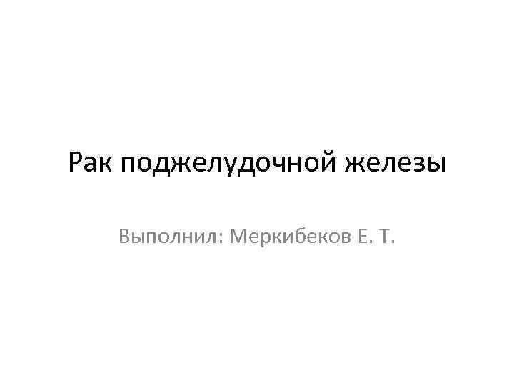 Рак поджелудочной железы Выполнил: Меркибеков Е. Т.