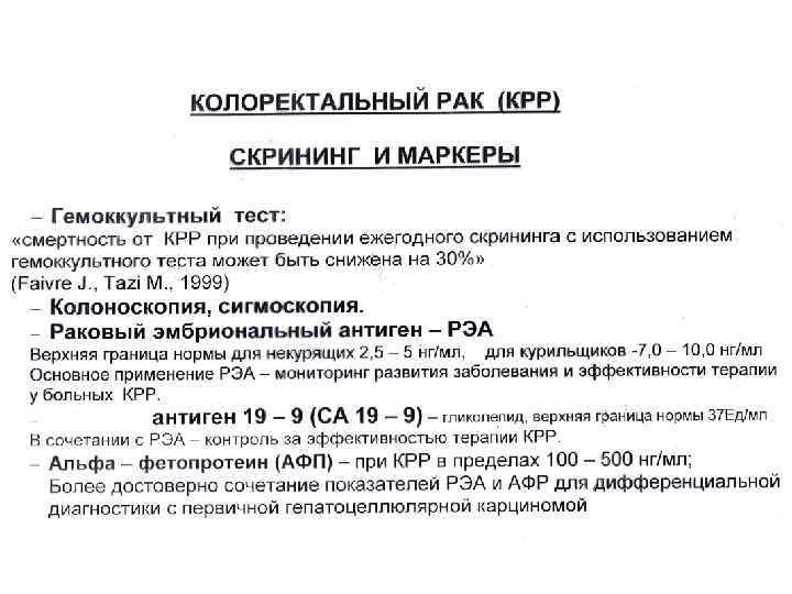 КРР прогностические маркеры -тимидилатсинтетаза -ТР 53, р27, VEGF, DCC -нестабильность микросаттелитов -уровень топомизомеразы