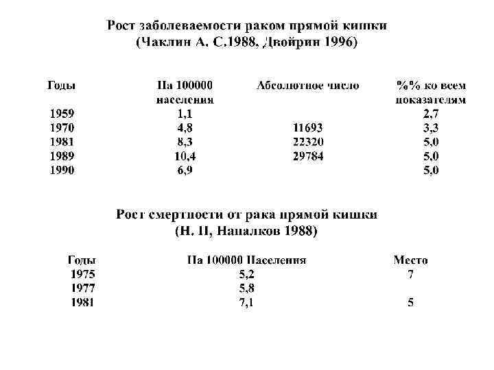 Распространенность рака прямой кишки, ректосигмоидного отдела, анального канала на 100 000 населения по России 1993 -2014 гг. 1993 1997 2002 2005 2010 2014 44. 5 51. 8 62. 8 70. 1 84. 5 98. 2 Контингент больных раком прямой кишки, ректосигмоидного отдела, анального канала (1993 -2014 гг. ) Больные с впервые выявленным диагнозом (абс. ) Больные с впервые установленным диагнозом (%) Стадия не уст. Лет-ть (I год) При профосмотрах (%) Диагноз подтвержден морфологически (%) I-II ст. % IIIст. % IV ст. % (1993 г. ) 21452 8. 3 86. 4 36. 6 32. 7 26. 7 3. 9 33. 5 (2010 г. ) 23841 7. 7 91. 0 45. 6 27. 0 24. 6 2. 8 28. 5 (2014 г. ) 25230 13. 3 92. 5 10, 2 38, 8 24. 8 23. 6 3. 2 24. 9