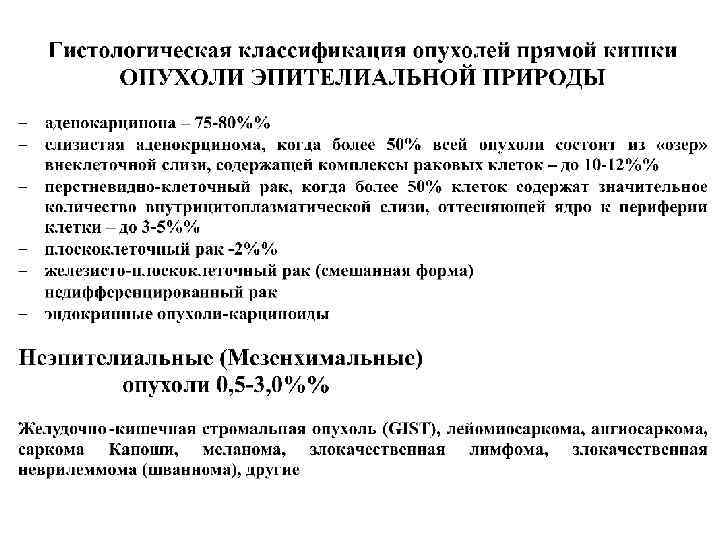 Клиническая симптоматика ПЕРВИЧНАЯ ( МЕСТНАЯ), ОБУСЛОВЛЕННАЯ НАЛИЧИЕМ ОПУХОЛИ В КИШКЕ 1. примесь крови и слизи 2. тенезмы 3. запоры до полной механической непроходимости 4. лентовидный кал 5. чувство неполного опорожнения кишки 6. ощущение инородного тела в кишке