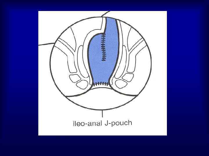 Синдром низкой передней резекции v Функциональные расстройства при длине культи прямой кишки менее 5 см: • Частые (до 6 раз в сутки) акты дефекации • Многомоментное, длительное, неполное кишечника • Императивные позывы на дефекацию • Явления анальной инконтиненции опорожнение v Lazorthes и Parc (1986) предложили, с целью восстановления резервуарной функции утраченной прямой кишки, создание тазового толстокишечного резервуара из двух петель низведенной кишки в форме буквы «J»