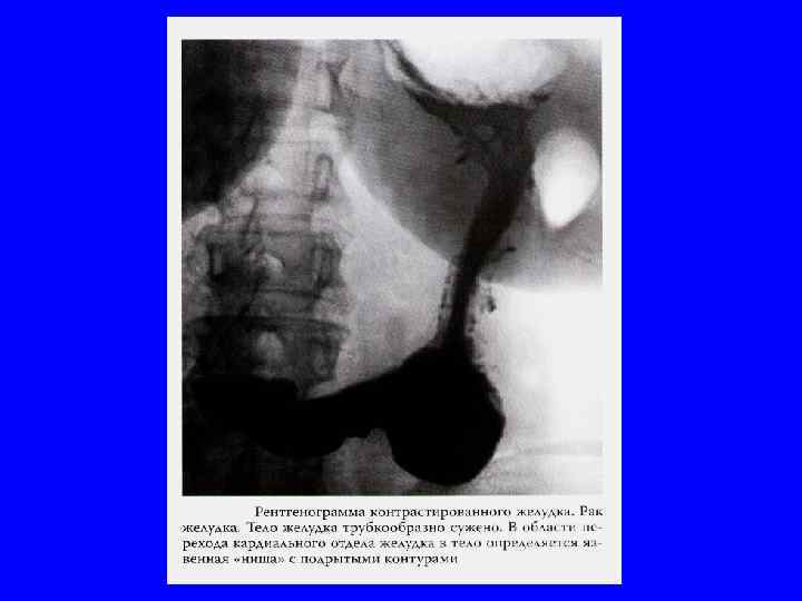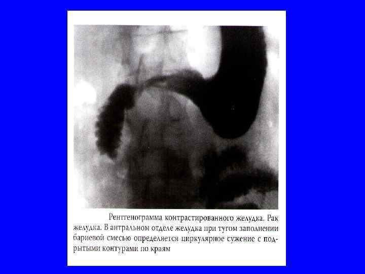 Рентгенологические признаки рака желудка Дефект наполнения l Дополнительная тень l Изменение рельефа слизистой оболочки l Ригидность стенки желудка l