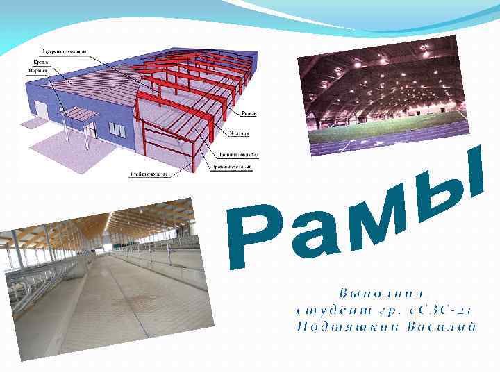 РАМА — стержневая система, элементы (стойки и ригели) которой во всех или некоторых узлах жестко связаны между собой. Трехшарнирная железобетонная рама Металлические рамы сплошного сечения