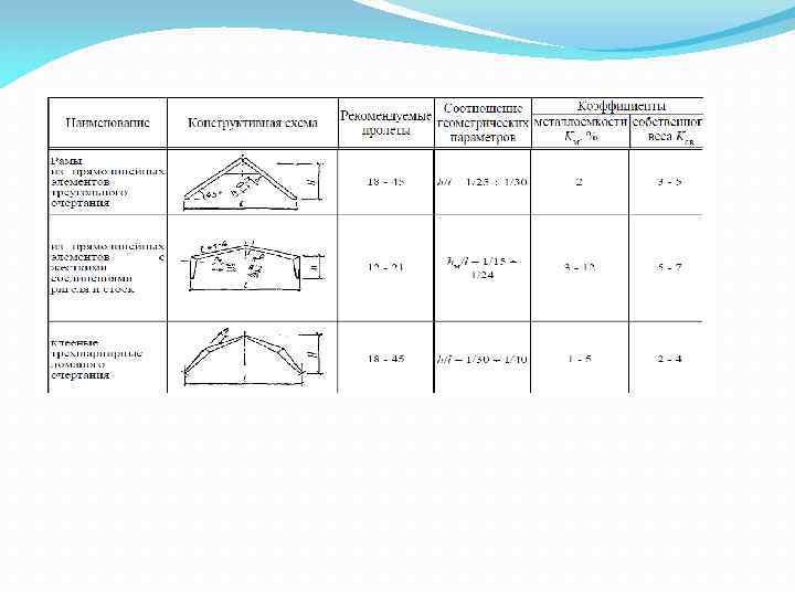 По конструктивному решению различают: с подкосами в карнизном узле с опорными подкосами с решетчатыми стойками