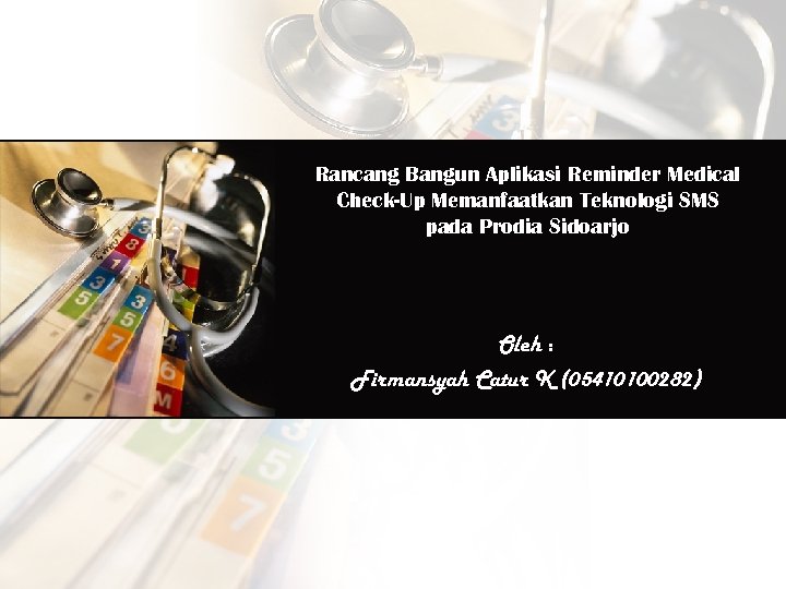 Rancang Bangun Aplikasi Reminder Medical Check-Up Memanfaatkan Teknologi SMS pada Prodia Sidoarjo Oleh : Firmansyah Catur K (05410100282)