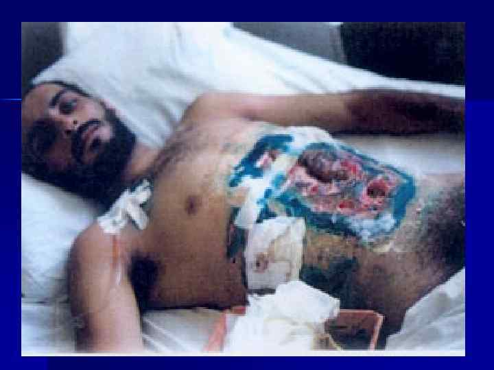 Первая врачебная помощь n n n n n Паранефральные блокады, Введение столбнячного анатоксина, Введение обезболивающих средств, Введение сердечных средств и дыхательных аналептикрв, Согревание раненых, Капиллярная пункция мочевого пузыря при задержке мочи. Введение зонда в желудок (промывание желудка не проводится!), Введение массивных доз антибиотиков внутримышечно, Парентеральное введение жидкостей и белковых препаратов.