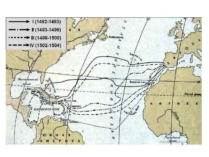 ВГО в Испании. Экспедиции Колумба • Первая экспедиция Колумба – 1492 год – достигли Гаити • Вторая экспедиция – 1493 -1496 годы – дошел до Ямайки • Третья экспедиция – 1498 -1500 годы • Арест (1500 год) – арестован по доносу • Четвертая экспедиция – 1502 -1504 годы • 1506 год – смерть Колумба