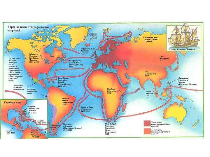 Предпосылки ВГО • Развитие ремесла и международной торговли • Перенаселение Средиземноморья • Дефицит драгоценных металлов • Изобретение и распространение книгопечатанья • Изобретение огнестрельного оружия • Завоевание турками Малой Азии