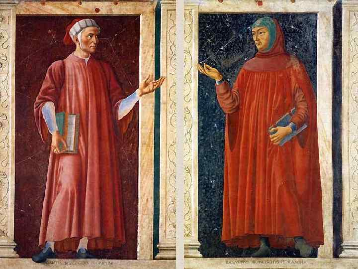 • Наиболее яркое произведение Кастаньо — фрески в вилле Пандольфини (ок. 1450), перенесенные впоследствии в церковь Санта Аполлония во Флоренции (в этой церкви, превращенной в музей Кастаньо, сосредоточены и другие фресковые работы мастера). Росписи виллы включают девять фигур, изображенных на зеленом и темно-красном фоне и отделенных друг от друга имитированными живописью пилястрами. Среди них представлены величайшие поэты и писатели эпохи Возрождения— Данте, Петрарка и Боккаччо, кондотьеры Флоренции — Фарината дельи Уберти и Филиппе Сколари, легендарные герои и героини древности — своеобразная галлерея типов, характеров и индивидуальностей. Писателям приданы портретные, хотя и несколько канонизированные черты лица, в воинах же выражен честолюбивый и властный дух человека Возрождения, который знает себе цену, уверен в своем значении и силе.