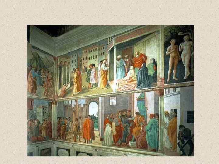 Цикл фресок в капелле Бранкаччи в Санта Мария дель Кармине (Флоренция) 1425 -1428 Фрески написаны при участии Мазолино (1383 – 1447), и закончены Филиппино Липпи