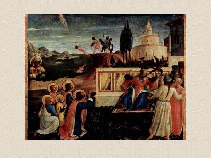 Фра Анджелико (1387 – 1455) Беато Анжелико; Фра Джованни да Фьезоле Благодаря Вазари художник стал известен под именем Фра (брат, монах) Анджелико. Долгое время художника называли Beato Angelico, т. е. Блаженный Анджелико, но Ватикан причислил его к лику блаженных только в 1984 году. Память Фра Анжелико празднуется 18 февраля. Некоторая близость позднеготической традиции. http: //sem 44. narod. ru/fraangelico/angelico. htm