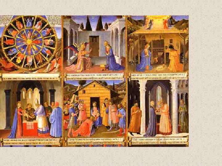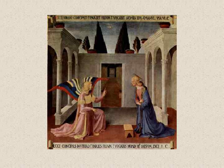 Центральная часть алтаря со сценами из жизни Марии. Благовещение 1433 -1434 гг. 150 x 180 см Дерево, темпера Кортона. Церковь иезуитов Первоначально находилась в церкви Сан Доменико, Кортона