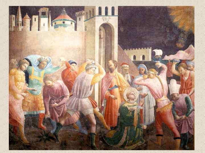 Цикл фресок из жизни святого Стефана и святого Лаврентия Св. Лаврентий раздает сокровища церкви бедным 1447 -1450 гг. Фреска Рим. Ватикан, Музеи Ватикана, Капелла Никколина