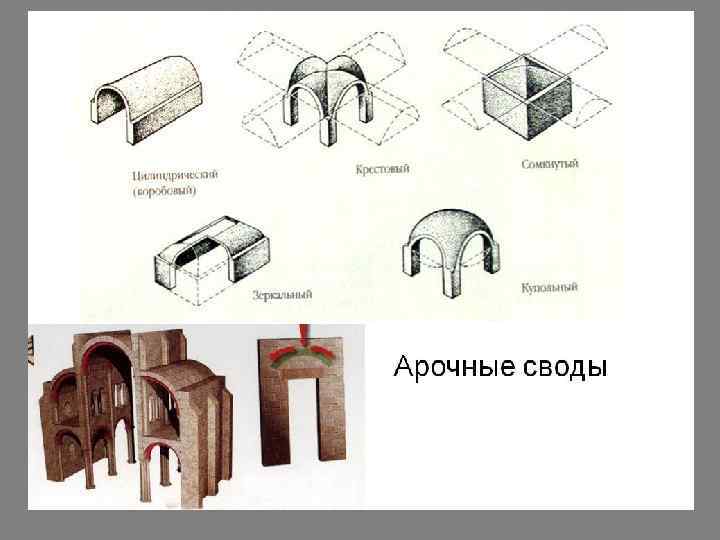 Для романских построек характерно: 1. Постройки составлены из простых геометрических форм — кубов, призм, цилиндров. 2. Лаконичность наружной отделки 3. Портал – вход в собор в виде перспективных арок 4. Каменные своды. 5. Тяжёлые своды требовали мощные стены с узкими проёмами окон и колонны 6. Основной мотив интерьера — полуциркульные арки