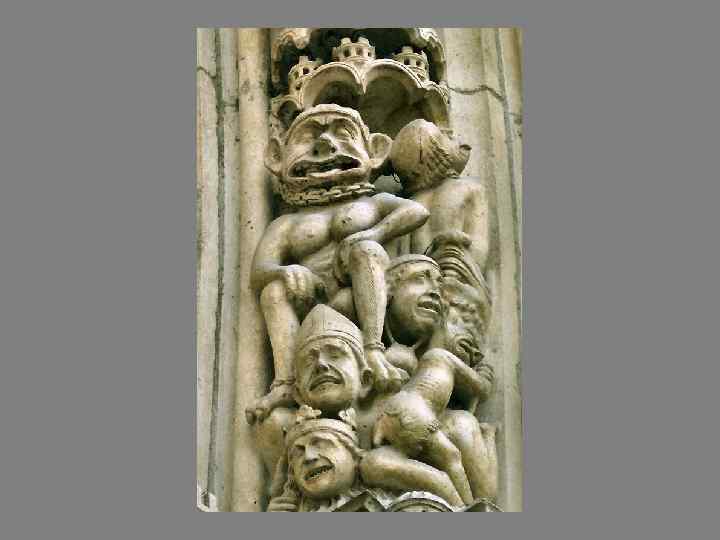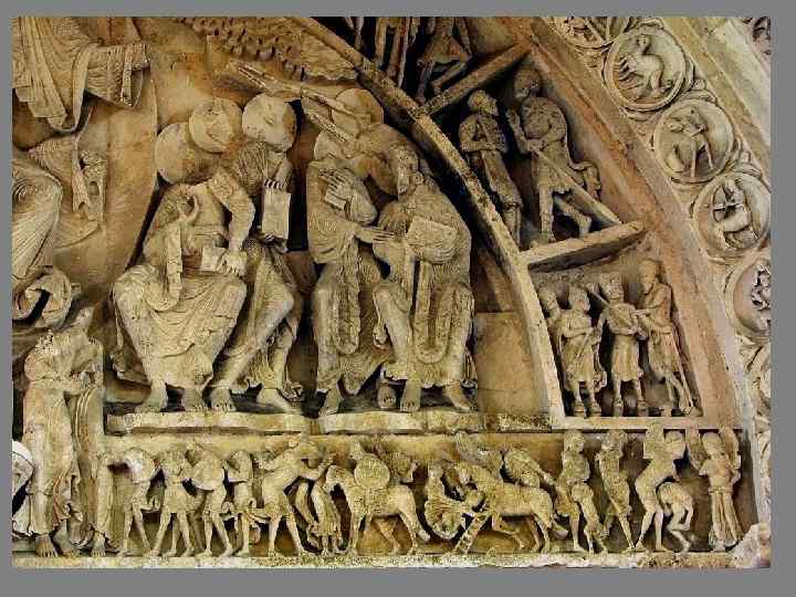 В XIIв. при дворе Барбароссы – самого могущественного светского правителя, и При дворе папы римского одновременно появились письма пресвитера Иоанна. В письмах Иоанн перечисляет жителей своего государства: псоглавцы, ушастики, карлики, человек с огромной ногой. Встал вопрос: как им нести истину и стоит ли? В портале этого собора на периферии изображены они все. Это указание на то, что апостолы пойдут на периферию проповедовать им.