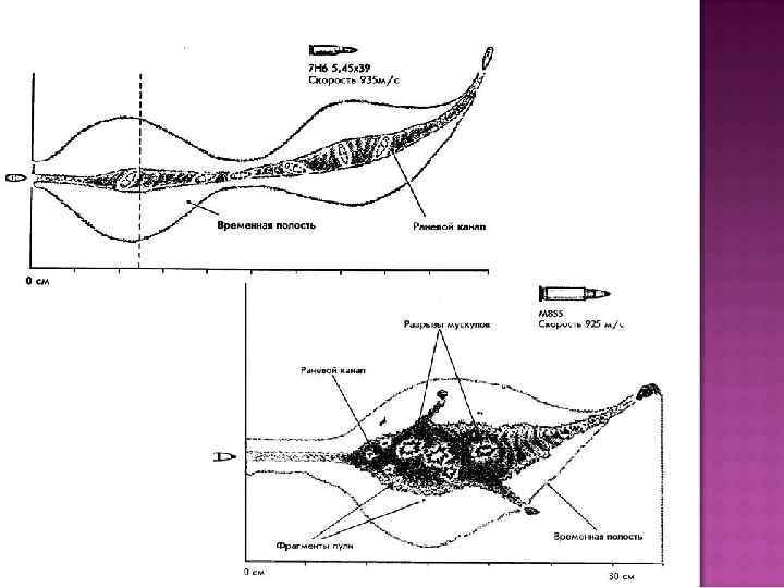 Раневой канал Зона первичного некроза 3 она коммоции тканей