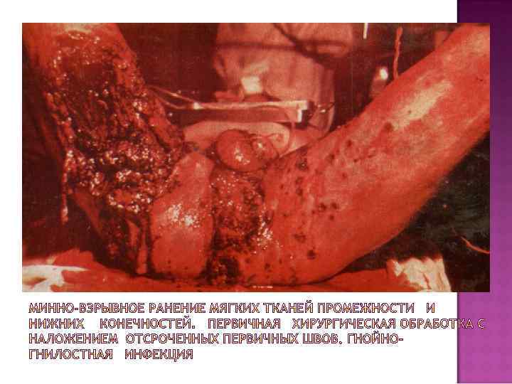 Спецификация повреждений нижних конечностей, стоп, голеней. Минно-взрывные повреждения носят часто сочетанный характер вследствие общего воздействия взрывной волны значительной интенсивности на организм пострадавшего.