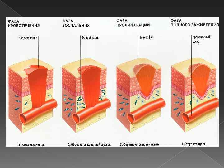 Заживление под струпом происходит при незначительных поверхностных повреждениях (ссадины, царапины, потертости и др. ). На поверхности ран происходит свертывание излившейся крови, лимфы, тканевой жидкости. В результате образуется плотная корка (струп), который играет роль защитной повязки. Под этой коркой быстро регенерируется эпидермис, и струп отторгается.