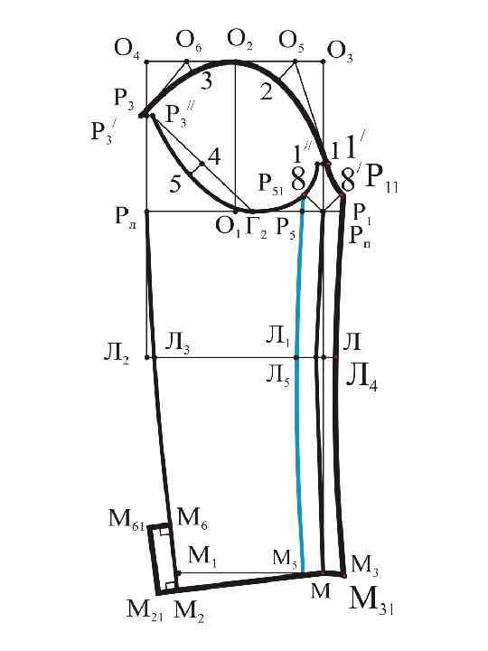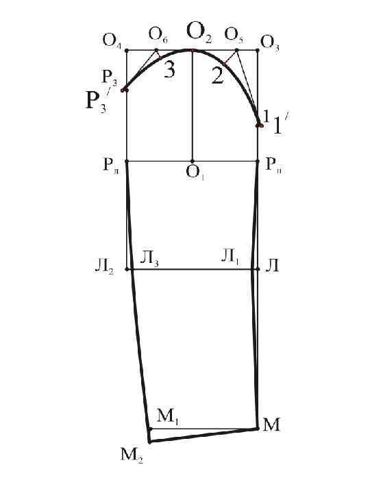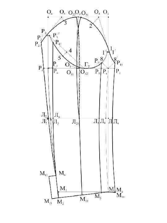 О 2 О 21 = 1, 0 1, 5 см вправо по линии оката; О 2 О 22 = 0, 7 1, 0 см влево по линии оката; О 1 О 11 = О 1 О 12 = 0, 5 1, 0 см влево и вправо соответственно; ММ 11 = 0, 5 ММ 2. Вспомогательная (. ) Л 21 служит для определения положения линии верхнего шва: Л 1 Л 21 = 0, 5 Л 1 Л 3 – 0, 5 см