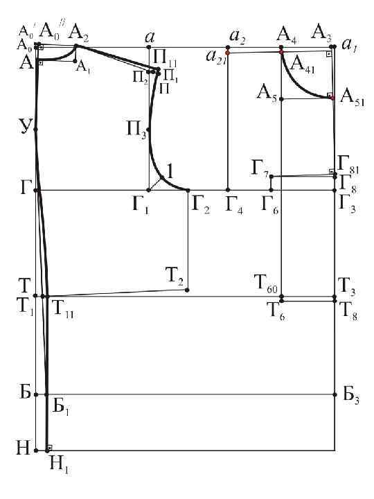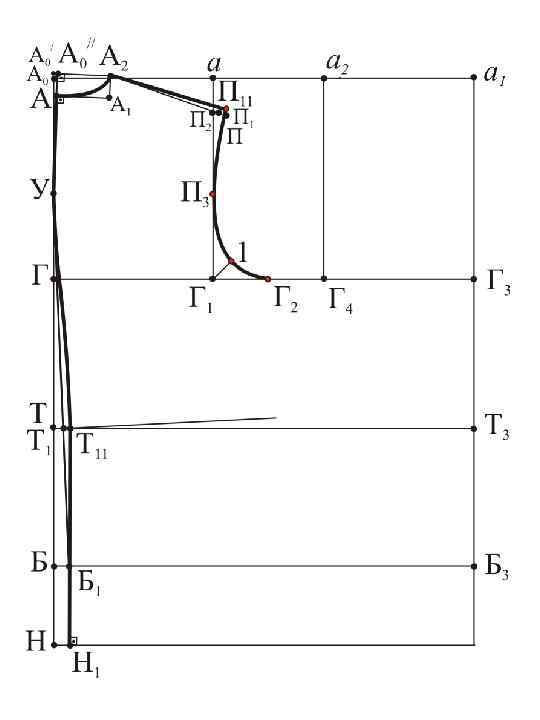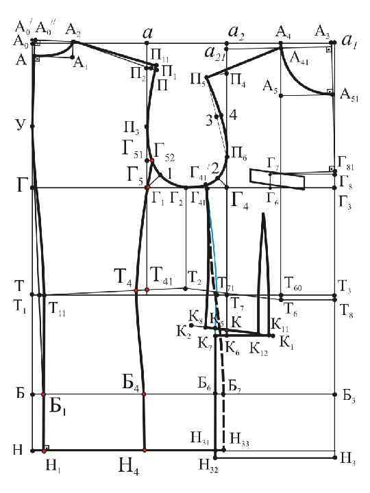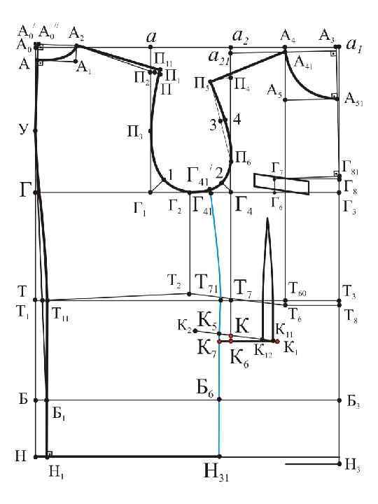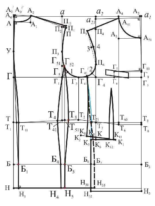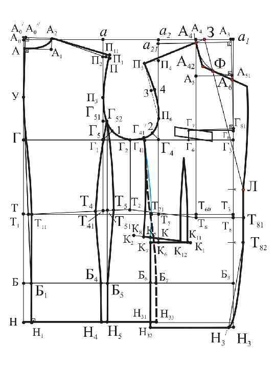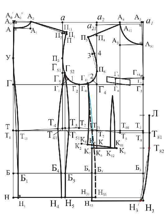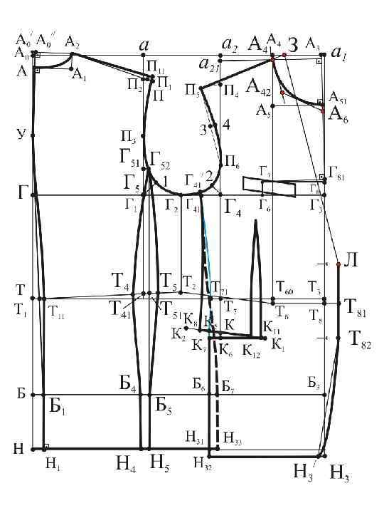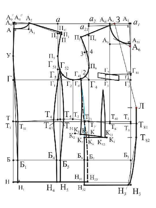 а 21 П 4=а. П 2+сутюжка пр. спинки Г 4 П 6 = 0, 25 Г 4 П 4 + 0, 5 см Г 42 = 0, 25 Г 1 Г 4 – 1, 2÷ 1, 5 см