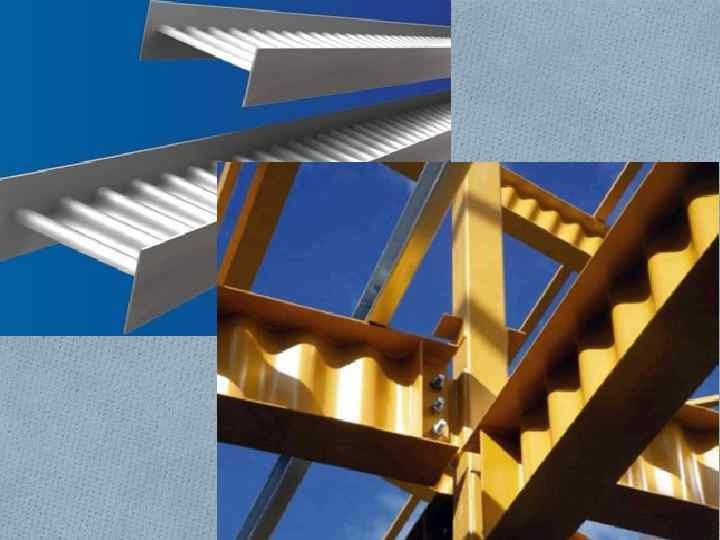 Балки с гофрированной стенкой O Одним из путей снижения металлоемкости балок является гофрирование их стенок. В обычных балках толщина стенок, как правило, определяется не условием прочности, а требованиями местной устойчивости.