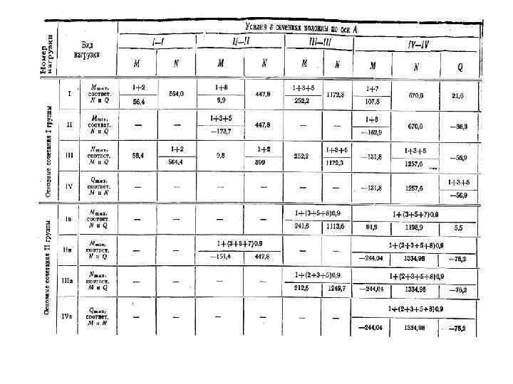 Сочетание нагрузок и соответствующие им расчетные изгибающие моменты к. Нм, поперечные и продольные силы к. Н