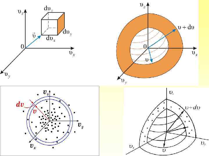 Или Этой формуле можно дать геометрическое истолкование: dnxyz – это число молекул в параллелепипеде со сторонами dυx, dυy, dυz, то есть в объёме находящемся на расстоянии от начала координат в пространстве скоростей.