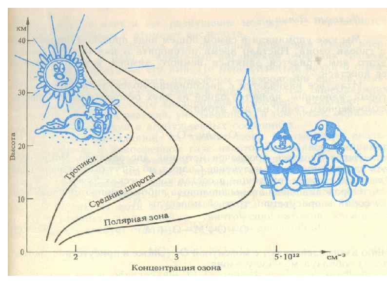 Процессы образования и гибели озона в атмосфере Водородный цикл НО + О 3 = НО 2 + О 2 НО 2 + О = НО + О 2 О 3 + О = 2 О 2 Азотный цикл NO + О 3 = NO 2 + О 2 NO 2 + О = NO + О 2 Хлорный цикл О 3 + О = 2 О 2 Cl + O 3 = Cl. O + O 2 Cl. O + O = Cl + O 2 O 3 + O = 2 O 2 СFCl 3 + h = СFCl 2 + Cl