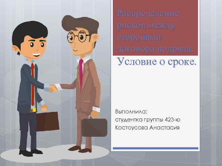 Распределение рисков между сторонами договора подряда. Условие о сроке. Выполнила: студентка группы 423 -ю Костоусова Анастасия