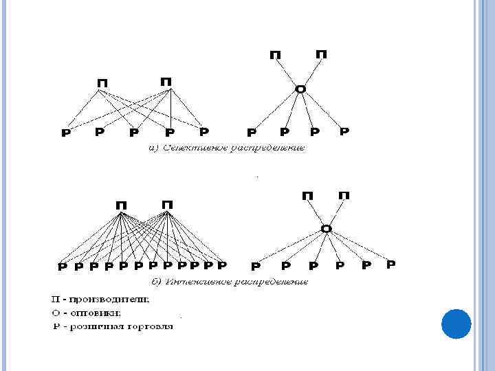 ИНТЕНСИВНОСТЬ РАСПРЕДЕЛЕНИЯ (ЧИСЛО ПОСРЕДНИКОВ) Интенсивное- максимизирование возможного количества точек распределения товара массовое и крупносерийное производство продуктов питания: Например, хлеб, молоко, шоколад, мороженое, минеральная вода и т. п. ). Селективное (избирательное) -выбор определенных торговых точек, которые лучшим образом подходят для реализации товары предварительного выбора, Например, мебели, бытовой техники, одежды, дорогих, технически сложных и нуждающихся в послепродажном обслуживании товаров. Эксклюзивное - намеренное ограничение числа потребителей товара и числа предприятий, реализующих его. уникальные товары (дорогие, высококачественые товары (дорогая парфюмерия и одежда, ювелирные изделия и т. п. ),