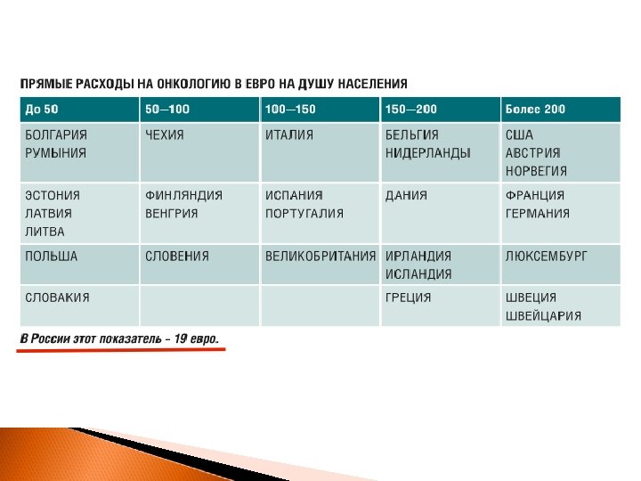 5 -летняя выживаемость пациентов с некоторыми нозологиями ЗНО Год РМЖ США Россия 1975 75, 3% 1986 79, 4% 1997 88, 5% 53, 8% 2009 90, 3% 56, 7% НХЛ 81, 1% 53, 2% КРР 67, 0% 48, 3%