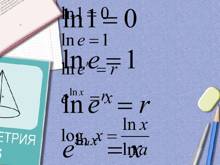 Расширить понятие логарифма, для этого введя понятие натурального логарифма, выяснить взаимное расположение графиков функции натурального логарифма и показательной, научиться использовать свойства для вычисления натуральных логарифмов