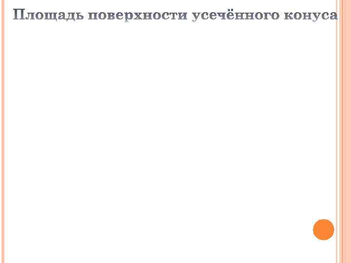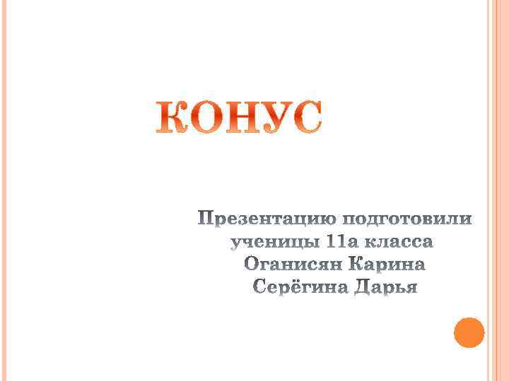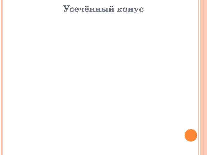 Тело, ограниченное конической поверхностью и кругом с границей L, называется конусом. L Круг называется основанием конуса, вершина конической поверхности – вершиной конуса, отрезки образующих, заключённые между вершиной и основанием, образующими конуса, а образованная ими часть конической поверхности – боковой поверхностью конуса. Ось конической поверхности называется осью конуса, а её отрезок, заключённый между вершиной и основанием – высотой конуса.