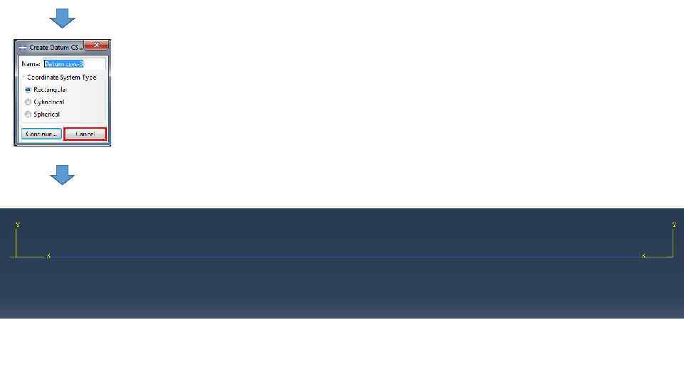 Другой способ сделать то же самое – это создать координатную систему CSYS. Подавим временно пункт Triangle. Load и зайдем в меню Tools>Datum>CSYS: 2 – направление оси X 1 - начало координат