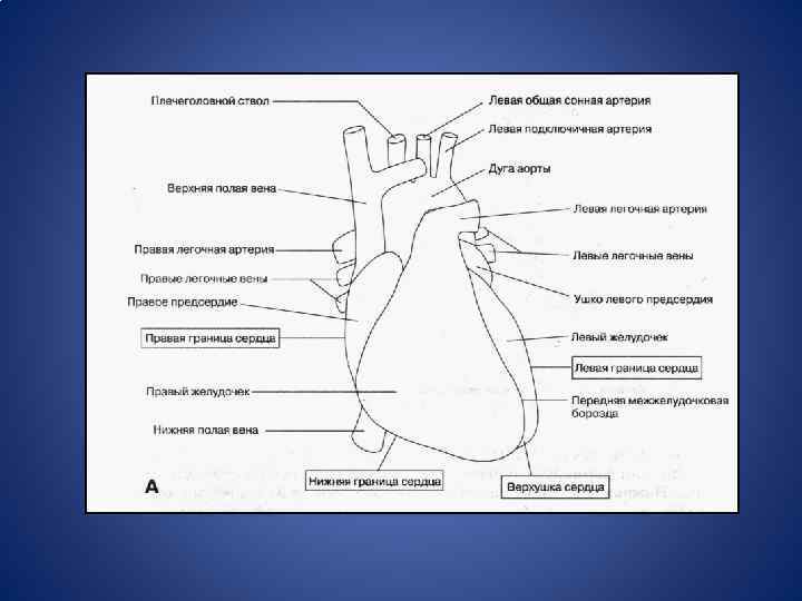 Боковой контур сердца При анализе полученных данных следует помнить, что на боковой контур сердца выходят: Справа • I – II межреберье – верхняя полая вена и восходящая аорта (сосудистый пучок), • III – IV межреберье – правое предсердие; Слева • I межреберье – нисходящая аорта, • II межреберье – легочная артерия, • III межреберье – ушко левого предсердия, • IV и V межреберья – левый желудочек,