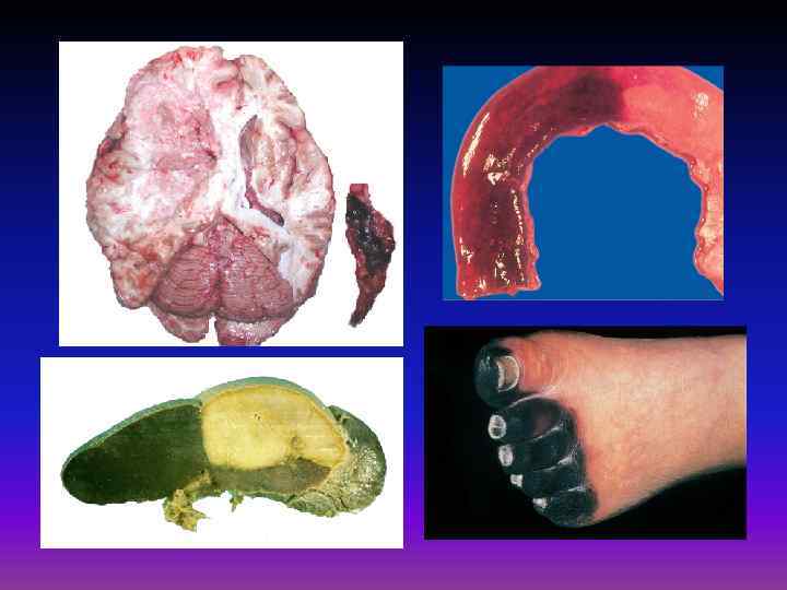 4 варианта расстройства кровообращения: • нарушение кровенаполнения – полнокровие (артериальное, венозное) и малокровие (артериальное - ишемия); • нарушение проницаемости сосудистой стенки – кровотечение, кровоизлияние. • нарушение реологических свойств крови – стаз, сладж-феномен, тромбоз, ДВС-синдром, эмболия; • нарушение регуляции сосудистого тонуса – шок;
