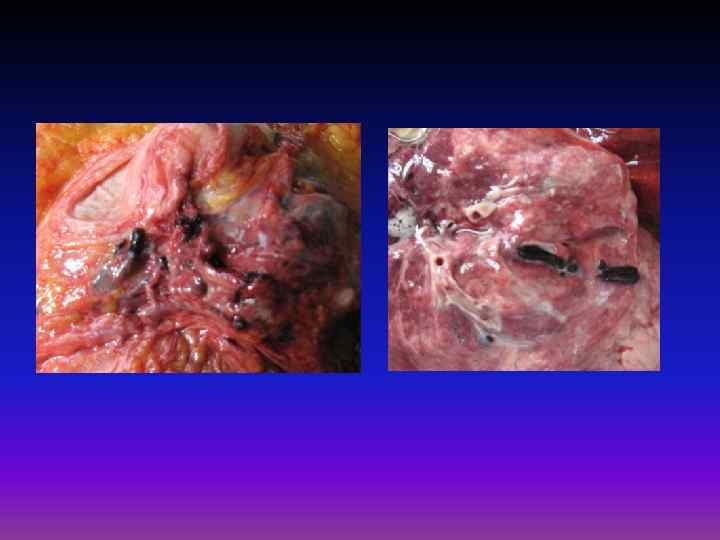 Хронический венозный застой Бурая индурация легких • Гемосидероз лёгких, обусловленный множественными кровоизлияниями вследствие диапедеза эритроцитов (бурый цвет ткани) • Склероз лёгких, обусловленный разрастанием соединительной ткани и уплотнением органа (индурация) • Развитие бурой индурации с последующей лёгочной гипертензией.