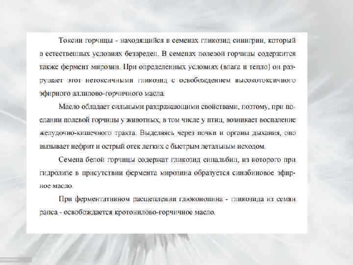 Какие вещества в растениях поражают ЖКТ и как? Гликозиды с азотсодержащими и серосодержащими агликонами при воздейстрвии ферментов Гликозиды нестойки и быстро освобождаютсвободные эфирные распадаются при выделении их из горчичные масла растений а также в процессе сушки при согревании зеленой массы, которую иногда складывают в пучки