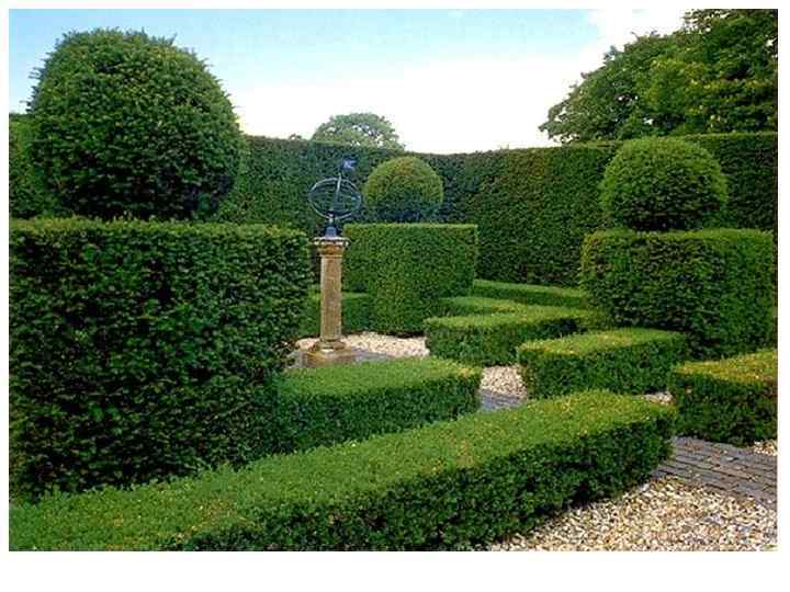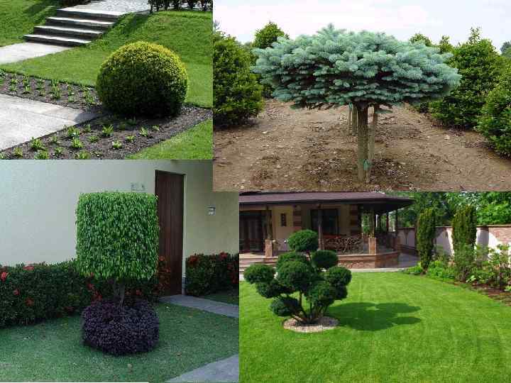 Все виды парковых насаждении (компоненты) в основном выполняют тождественные функции в пейзажах и различаются стилистически. Солитеры, или отдельно стоящие деревья, используются как в регулярных, так и пейзажных композициях. Размер солитера определяется масштабом композиции.