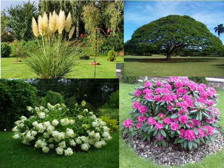Группы из деревьев и кустарников. Группа - это сочетание древесных растений одного или нескольких видов, расположенных изолированно на открытом пространстве парка.