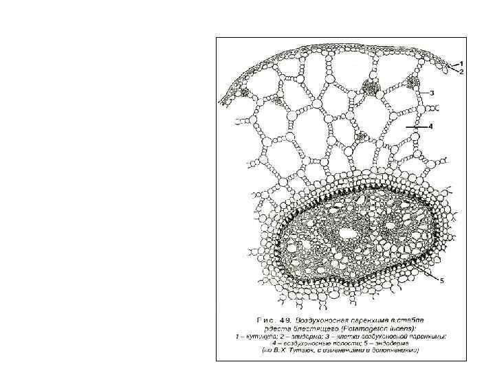 5. Основные ткани Составляют основу органов, паренхиму. Различают: 1. Ассимиляционную, или хлорофиллоносную, паренхиму (хлоренхиму). 2. Запасающую паренхиму. Преимущественно развита в осевых органах, органах репродуктивного и вегетативного размножения. Служат для сохранения питательных веществ. 3. Воздухоносная паренхима.