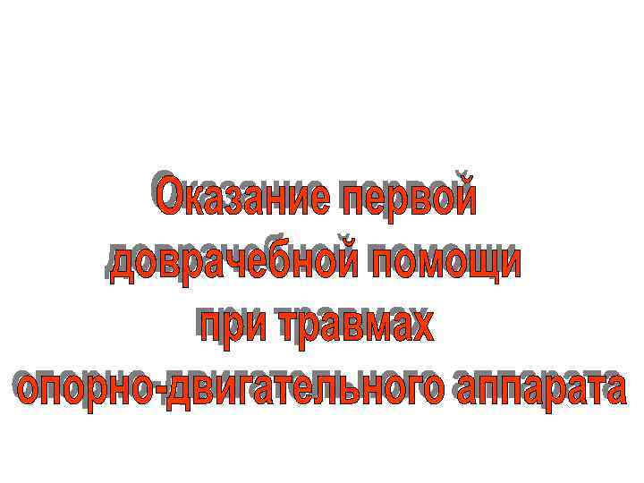 Первая медицинская помощь при закрытых переломах • При закрытом переломе следует обеспечить покой повреждённой конечности, для чего накладывают специальную шину, затем дают обезболивающее средство, после чего обязательно доставляют пострадавшего к врачу