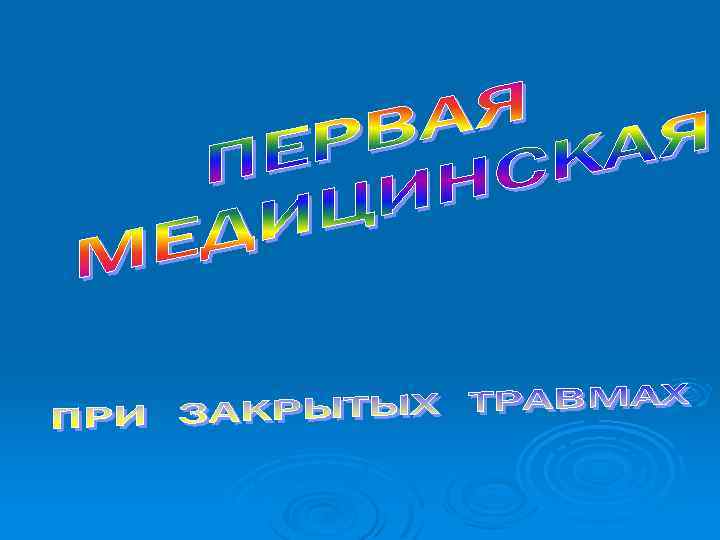 ПМП при переломах Главное – обеспечить неподвижность повреждённой части тела! При закрытых: Ø обездвижить Ø обезболить При открытых: Ø остановить кровотечение Ø стерильная повязка Ø обезболить Ø обездвижить Направить в лечебное учреждение!