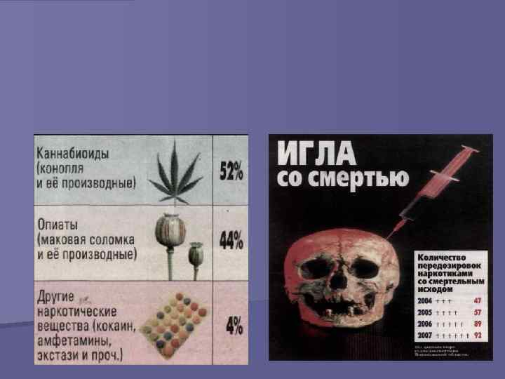 Миф 1. Употребление наркотиков не болезнь, а баловство, дурная привычка. Употребление наркотиков очень скоро приводит к возникновению болезни, название которой наркомания. Основной симптом этой страшной болезни зависимость от употребления наркотика, начинающего играть в обмене веществ человека такую же роль, как воздух, вода и пища. Если эту болезнь вовремя не остановить, она приводит к ранней и мучительной смерти, поскольку изменения в организме становятся необратимыми.