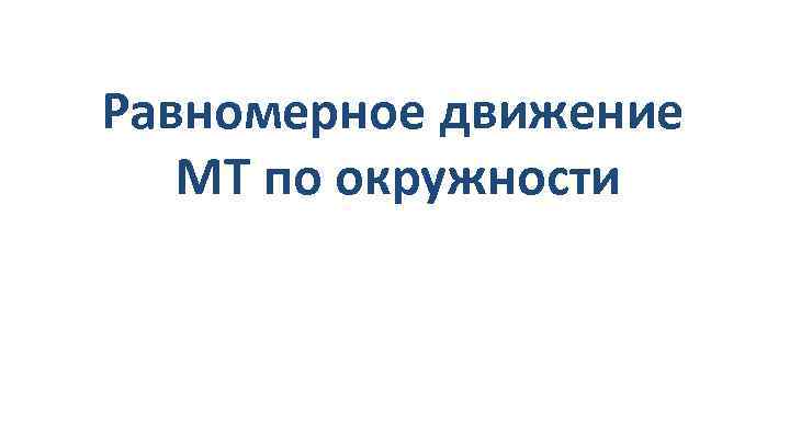 Равномерное движение МТ по окружности