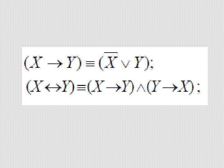 Равносильные преобразования • Равносильные преобразования логических формул имеют то же назначение, что и преобразования формул в обычной алгебре. • Они служат для упрощения формул или приведения их к определённому виду путем использования основных законов алгебры логики.
