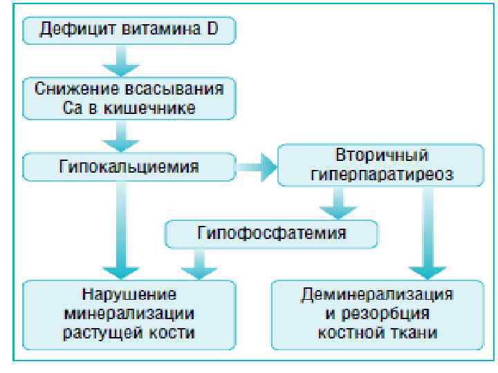 Патогенезі Д витаминініњ функциялары Ішекте Са сіңірілуін ынталандыру. Са мен Р-дың арықшалардағы реабсорбциясын арттыру. Сүйектің минералдануын ынталандыру: қан-сүйек шекарасында цитраттар түзілісін күшейтеді; клеткадан тыс сұйыққа Са концентрациясы төмендегенде баған клеткалардың остекластраға аусуын белсендіреді, яғни сүйектің ремоделденуі жүреді; Органикалық матрица қасиеттеріне белсенді әрекет етеді- бөлінетін хондроциттердегі глюкозаминогликандарды ынталандырады. Глюкозаминогликандардың аниондық топтары Са ионын байлап, оссификацияға әкеледі; сүйектің басты белогы остеокальциннің остеобласттардаѓы түзілісін ынталандырады; бұлшықет жиырылуын белсендіру арқылы Са-дің етке енуін ынталандырады; иммундымодельдеу және антипролиферативтік әсер.