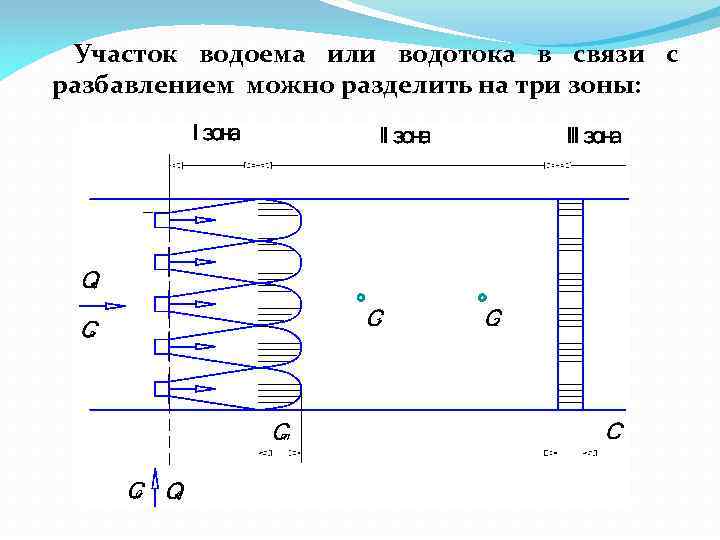 Участок водоема или водотока в связи с разбавлением можно разделить на три зоны: