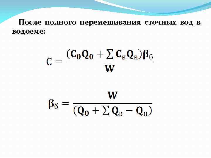 Общие понятия и закономерности Разбавление сточных вод - процесс снижения концентрации веществ в водотоках и водоёмах. Интенсивность процесса разбавления количественно характеризуется кратностью разбавления и определяется по формуле: